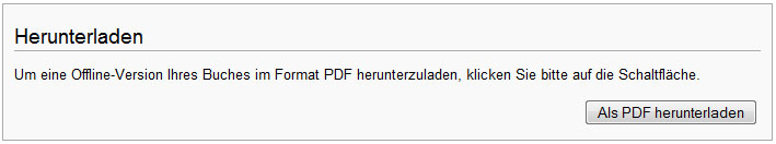 - Das fertige Buch kann heruntergeladen oder als gebundenes Buch bestellt werden. Für das Herunterladen auf die eigene Festplatte steht das Format PDF zur Verfügung.