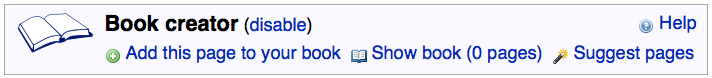 After the book creator has been enabled, the box as seen below is shown above each wiki page.